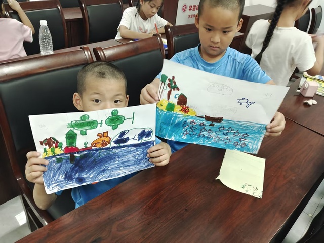 (图为小朋友展示自己的水彩画。通讯员 肖述洋 摄)
