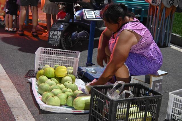 (图为农家阿姨在毛嘴网红街卖瓜)