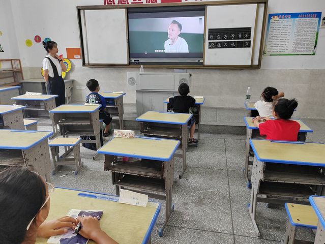(图为志愿者吴枫枰为学生播放网络暴力危害视频)