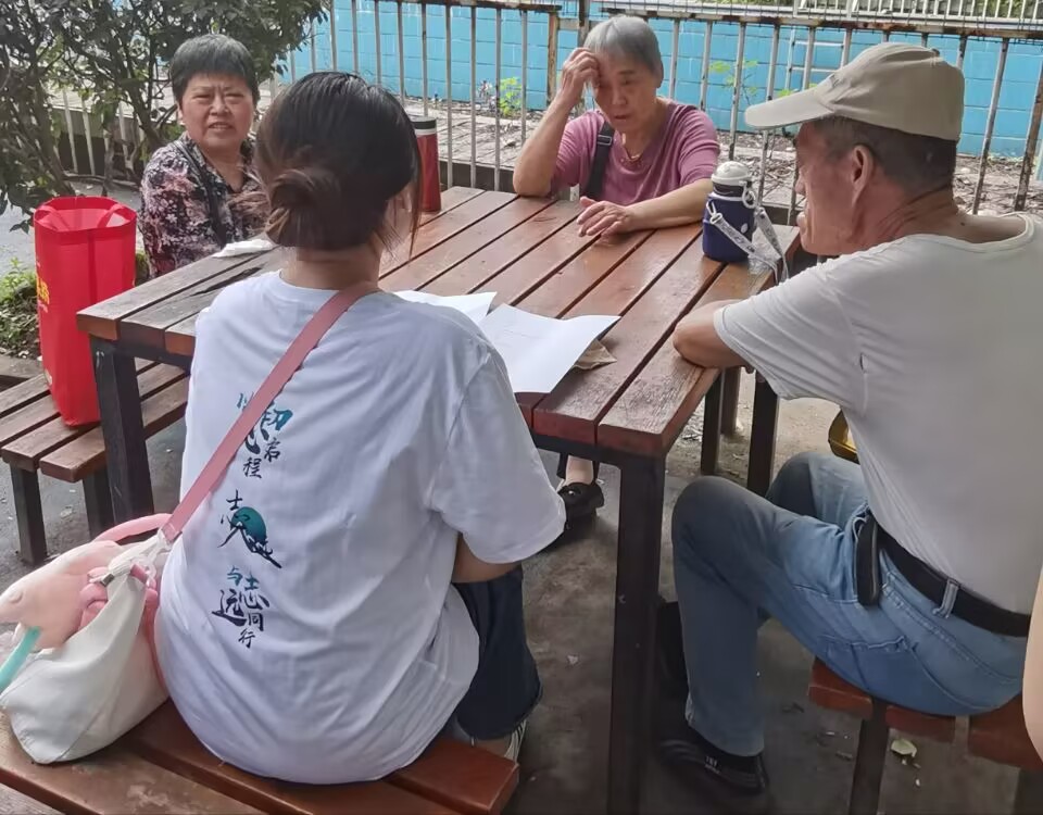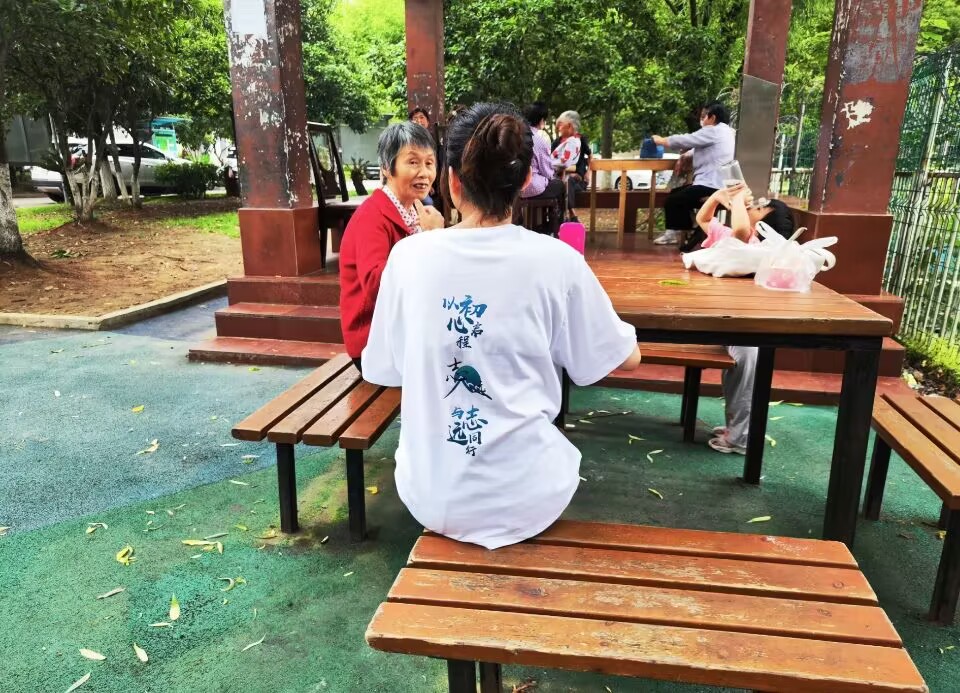 (图为队员拜访正在工作的老年群体,并和他们一起完成工作。本网讯通讯员 王敏煜 摄)