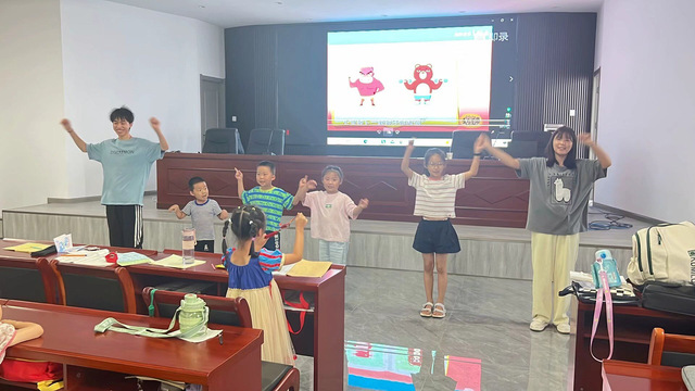 我给小朋友们上的第一节课是音乐课,其实我备课的时候有一些害怕我们年龄相差这么大,喜欢听喜欢唱的歌大不相同,我教的歌他们会不会不喜欢,会不会不愿意学呢?所以为了做好功课,我给远在广东乐享暑假的五岁的表弟打去了电话,在听取他的意见了之后,我决定挑选三首歌让小朋友们自己选择。出乎我的意料的是,一首《勇气大爆发》格外受欢迎,这不是前段时间抖音上很流行的吗!我这才恍然大悟——小朋友也喜欢玩抖音,抖音热曲适合各个年龄段!这也给我之后的音乐课提供了一个新的思路。