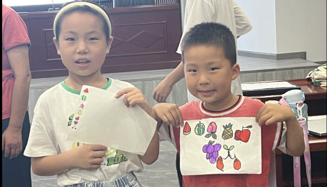 我不仅带他们的音乐课,还有绘画课和手工课。最后一天说再见的时候,有两个小朋友送给我一堆自制的小纸片,上面画的居然是我教给他们画的水果,我这才知道,原来我教的绘画会被做成小卡片,他们自己收藏了一份还给我做了一份。真的很感动,原来他们真的很喜欢我上的课,原来他们真的很喜欢我这个大学生老师。后来跟同行的朋友说起这件事,我才知道,有好几个小朋友几乎每天都要再画一遍那些水果,他们是真的很喜欢很喜欢我教的画!现在看着当时拍的照片,他们展示自己画的画时那热忱的眼神和可爱的笑脸真的很好看。