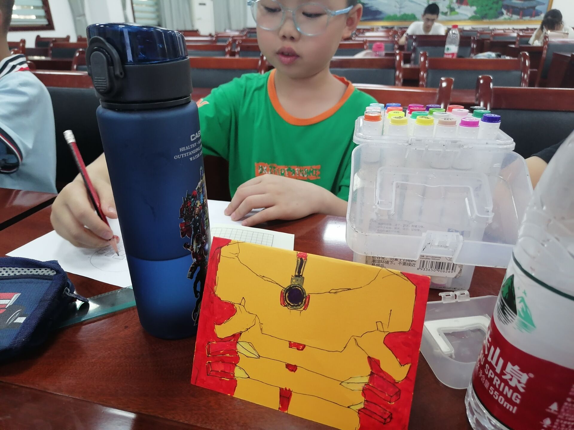 终于到了激动人心的展示环节了,一位男生激动地站起来向大家介绍自己的钢铁侠名牌,他在选择卡纸的颜色时,选择了黄色卡纸,这样的话只用在卡纸上添加红色,就能使自己的钢铁侠图案显现出来,同学们听过他的介绍后不禁发出声声赞叹,其他比较害羞的小朋友也鼓起勇气站起来展示自己的名牌,有的偏向简单的黑白线条搭配,有的偏向五颜六色的多彩设计,有的更乐于加上自己喜欢吃的食物,妥妥“小吃货”一枚。