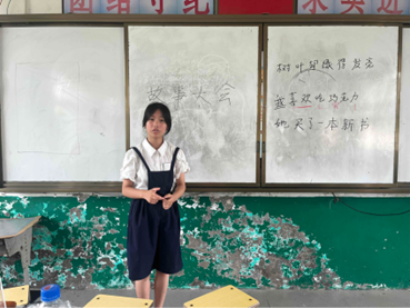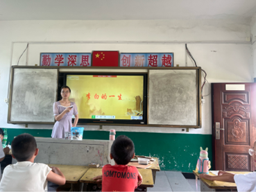 转眼间,为期一个月的三下乡实践活动即将结束,各分队的志愿者们为学生们准备了结业仪式与学生们进行最后的告别。“他们的呐喊如同一阵阵惊雷,激荡着这昏睡的土地。”学生们慷慨激昂地朗诵着,从百年前痛苦屈辱的历史讲到现在幸福繁荣的生活,他们声情并茂,讴歌了祖国的大好河山,赞美了民族精神,充分表达了誓做栋梁的决心;“我们阳光下成长,沐浴祖国的温暖,红领巾随风飘扬,把未来点燃。”学生们跟随背景音乐翩翩起舞,手上绑着的红星随着学生们的动作摇晃,好像在闪烁着星光;“微微晨光点亮这喧嚣世界,微微温暖融化昨夜的冰雪。”学生们手牵着手歌唱着,用稚嫩的童声唱出了生活中那些不为人所注意到的美好事物。