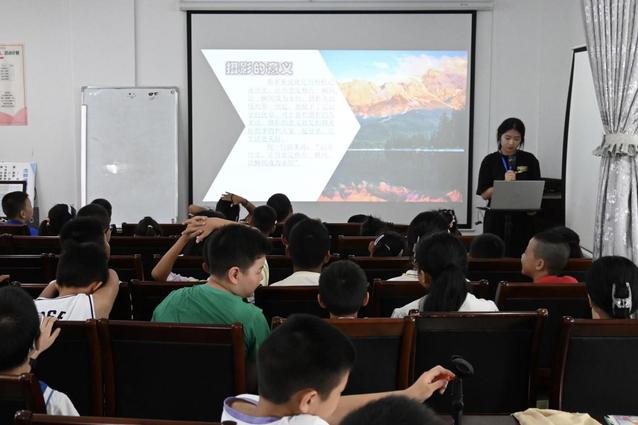 (图为志愿者老师在为孩子们讲解有关摄影的意义,激发他们对摄影的兴趣。通讯员 付渝彤 摄)