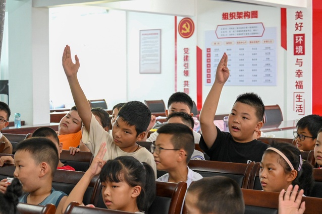 (图为孩子们积极举手回答问题。通讯员 付渝彤 摄)