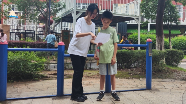 (图为志愿者询问小朋友是否有心理困扰)