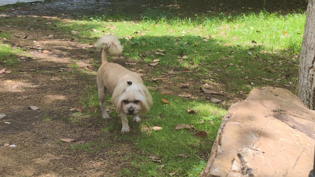(图为留守儿童精心扎发打扮的小狗)