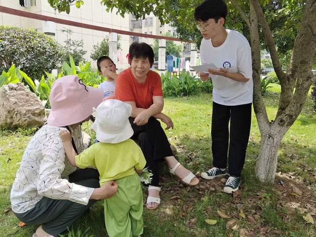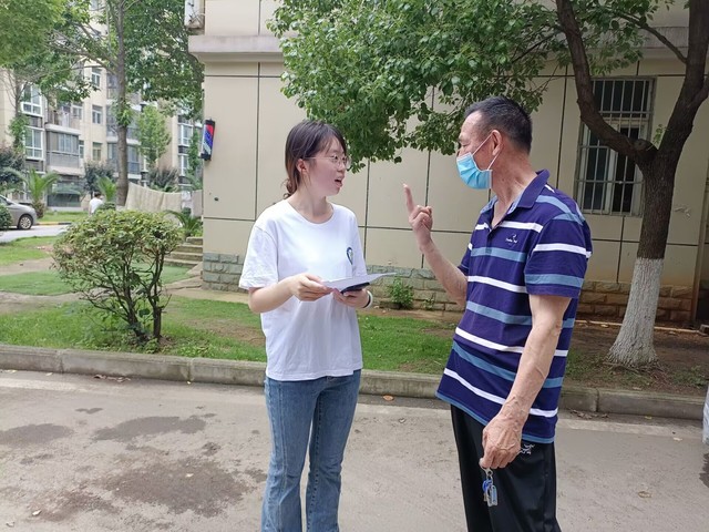(图为志愿服务队队员邀请社区居民填写调查问卷。通讯员 张雨娴 摄)