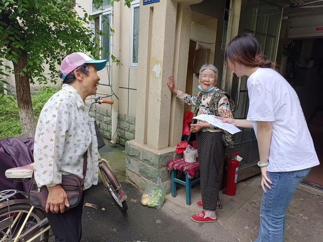 (图为志愿服务队成员对当地的老年人生活情况和社区服务情况进行了解和采访,在亲身实践中获得真实的信息。通讯员 贾婷婷 摄)