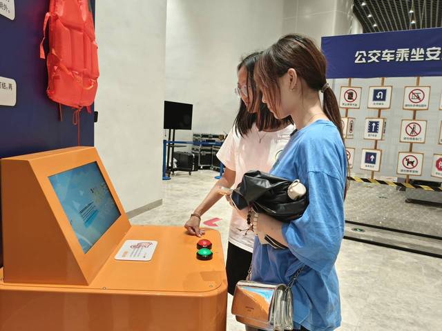 在临时展厅中,摆放着许多关于安全知识的宣传,有不少孩子们在此驻足游玩,流连忘返。展厅中多以一个安全问题引出队员们的回答兴趣,使队员们跟随指引来到展牌后方,又能够发现一台模拟机器,从而在机器上亲身实践自己的回答对错与否。这种新奇的教育方式也给了家长们一个新的教育孩子们了解安全知识的途径。当科技与教育碰撞,所产生的火花也使无数家庭受益。