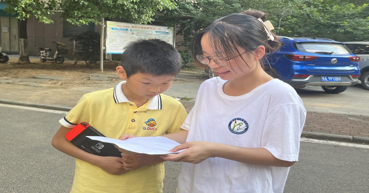 (图为志远队队员对小朋友进行毒品了解度问卷调查。通讯员 王丽思 摄)