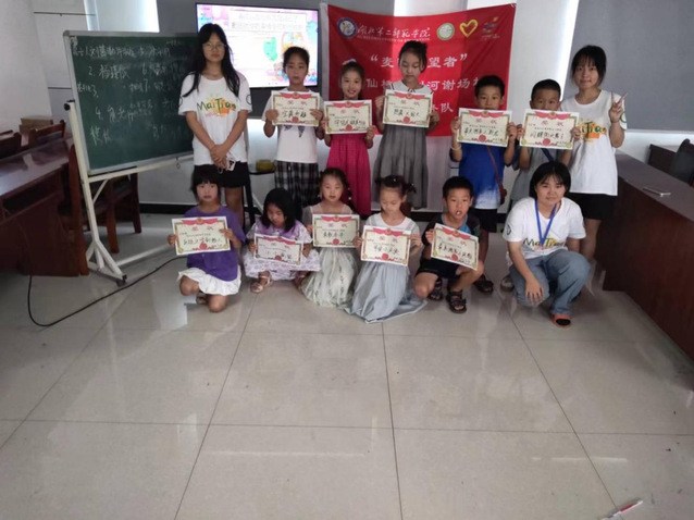 本网讯(通讯员 熊紫萌)7月31日,我校赴仙桃市“麦田守望者”志愿服务团队于仙桃市举办了2023年“希望家园”结业仪式,本团队2023年暑期三下乡志愿服务活动阶段性结束。结业仪式开始,首先由老师带着大家回忆了这十五天大家一起度过的点点滴滴,同学们都认真的看着屏幕上划过去的一张又一张照片,有的眼角都泛起了泪花。随后是才艺表演环节,同学们纷纷踊跃表演节目,或唱歌或跳舞,将现场气氛推至高潮。最后,志愿者老师向大家颁发了独一无二的奖状。大家在欢笑声中合影留念,结业仪式拉下帷幕。本次活动旨在总结支教经验,与孩子们告别,为支教活动画上一个完美的句号。据悉,“麦田守望者”志愿服务团队将在八月份招募志愿者集中前往点位继续支教活动,为乡村建设贡献青春力量。
