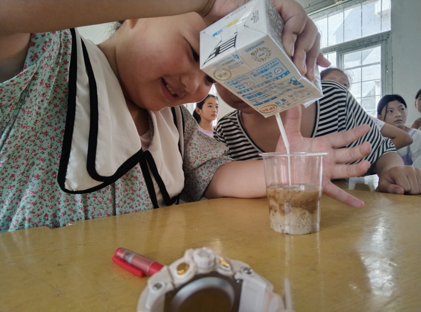 (图为学生亲手操作科学小实验,感受化学反应的神奇。)