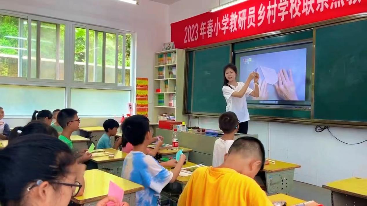 (图为志愿者老师在开展手工折纸课,在课堂上,小朋友们积极参与,享受着创造的乐趣。通讯员 谷玉婷 供图)