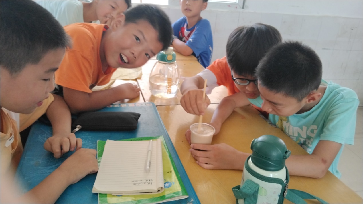 (图为科学小实验课上,学生学到化学知识后露出纯真的笑脸。)