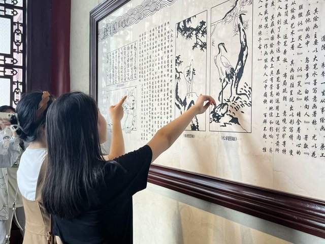 (图为实践队员仔细研读《地灵图》,充分领略江西风景独好的灵秀景色。通讯员 宋涵 摄)