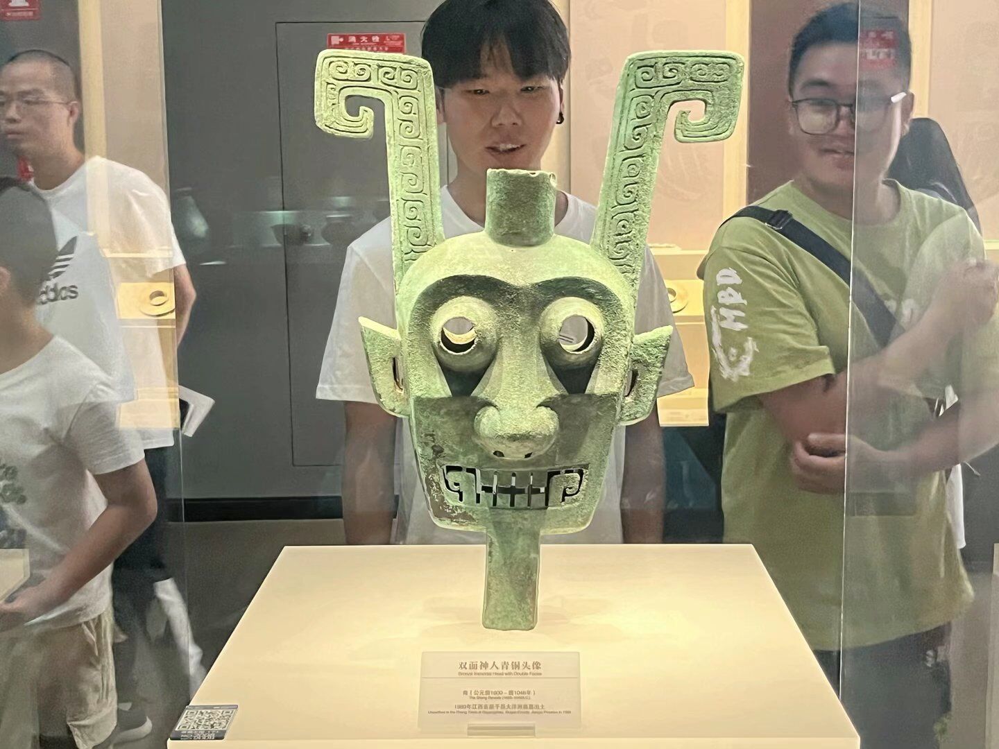 (图片为我校队员欣赏南昌镇馆之宝——商代双面神人青铜头像 本网讯通讯员 闵佳怡 供图)