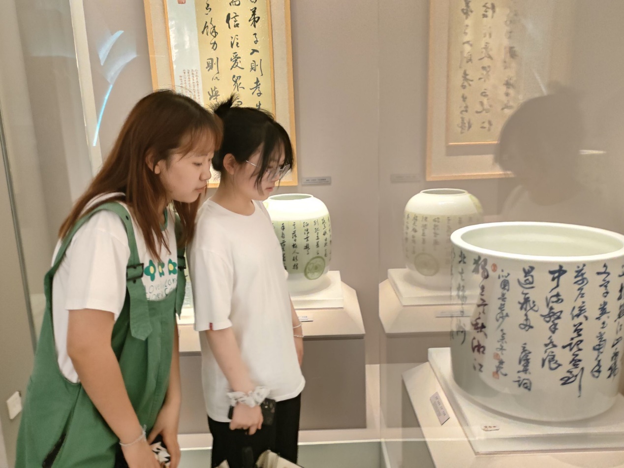 (图片为我校队员欣赏宋代白瓷缸 本网讯通讯员 闵佳怡 供图)