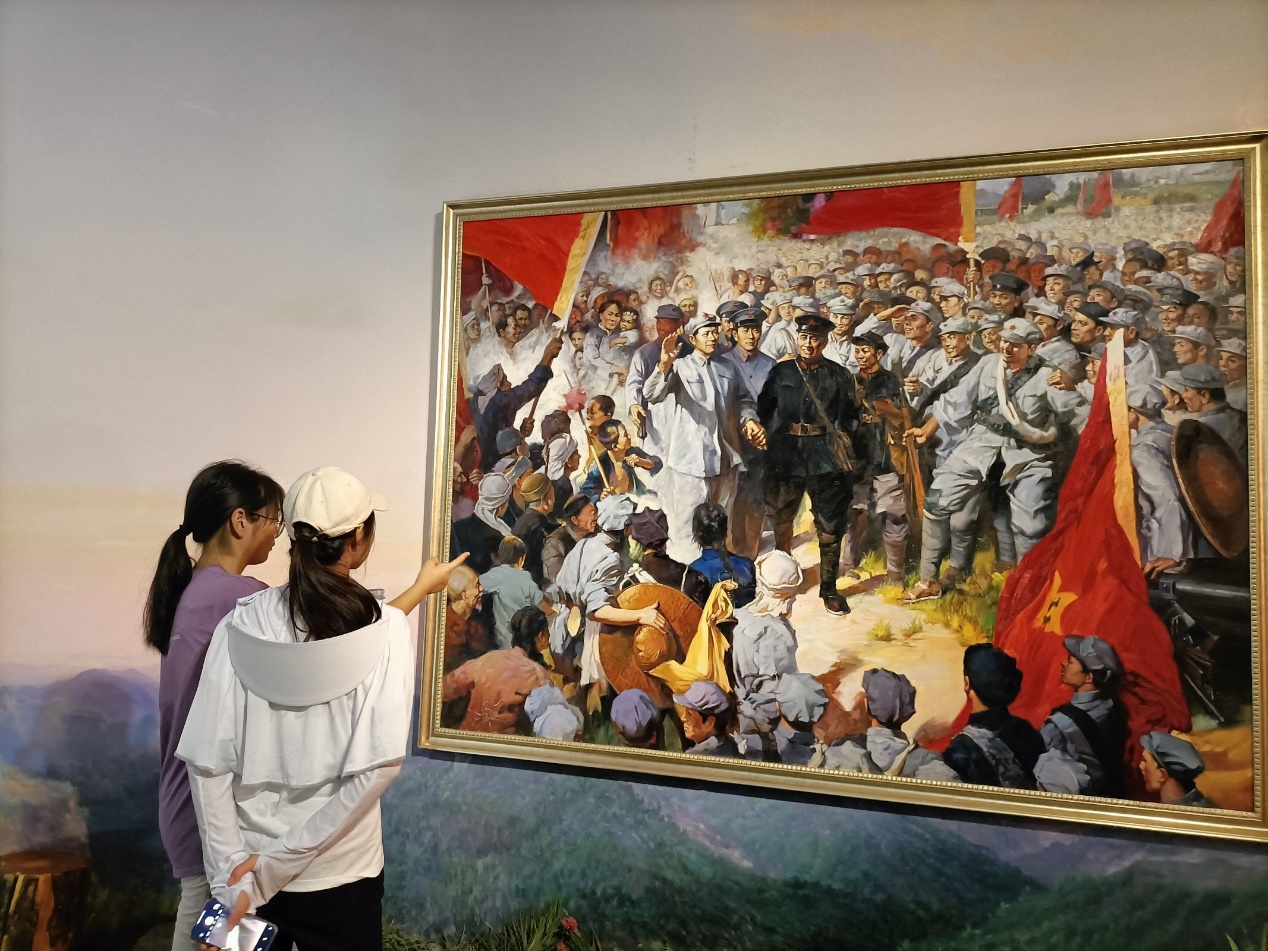 (图片为我校队员参观毛朱会师纪念绘画 本网讯通讯员 闵佳怡 供图)
