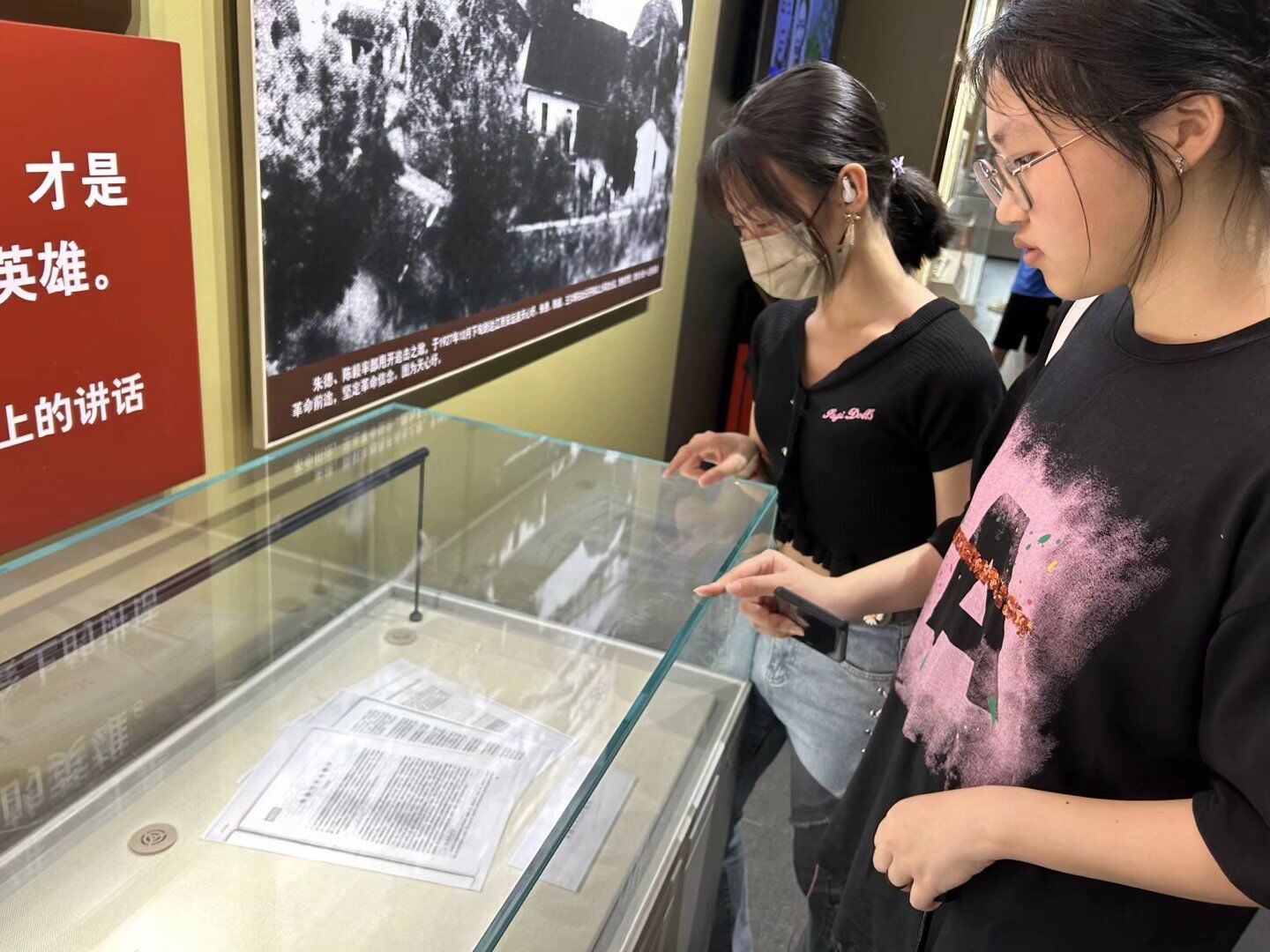 (图片为实践队队员讨论八一起义遗留物品的历史意义 本网讯通讯员 闵佳怡 供图)