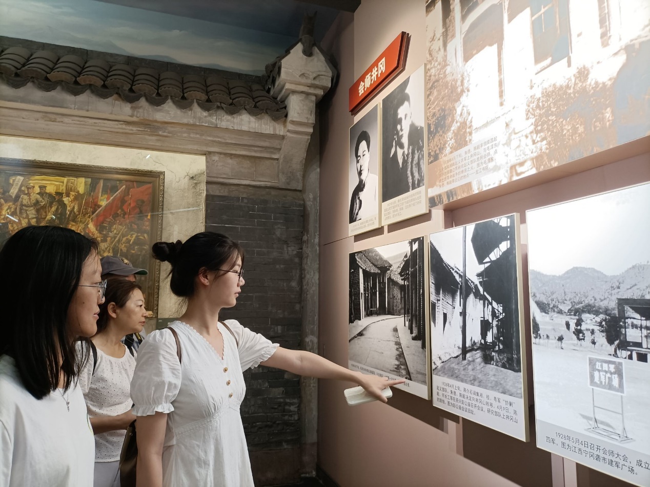 (图片为实践队队长为队员讲解井冈山会师 本网讯通讯员 闵佳怡 供图)