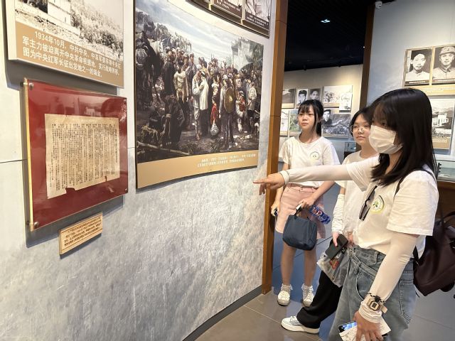 (图为实践队队员正在阅读《我们是中国工农红军抗日先遣队宣言》。通讯员陈谢君 供图)