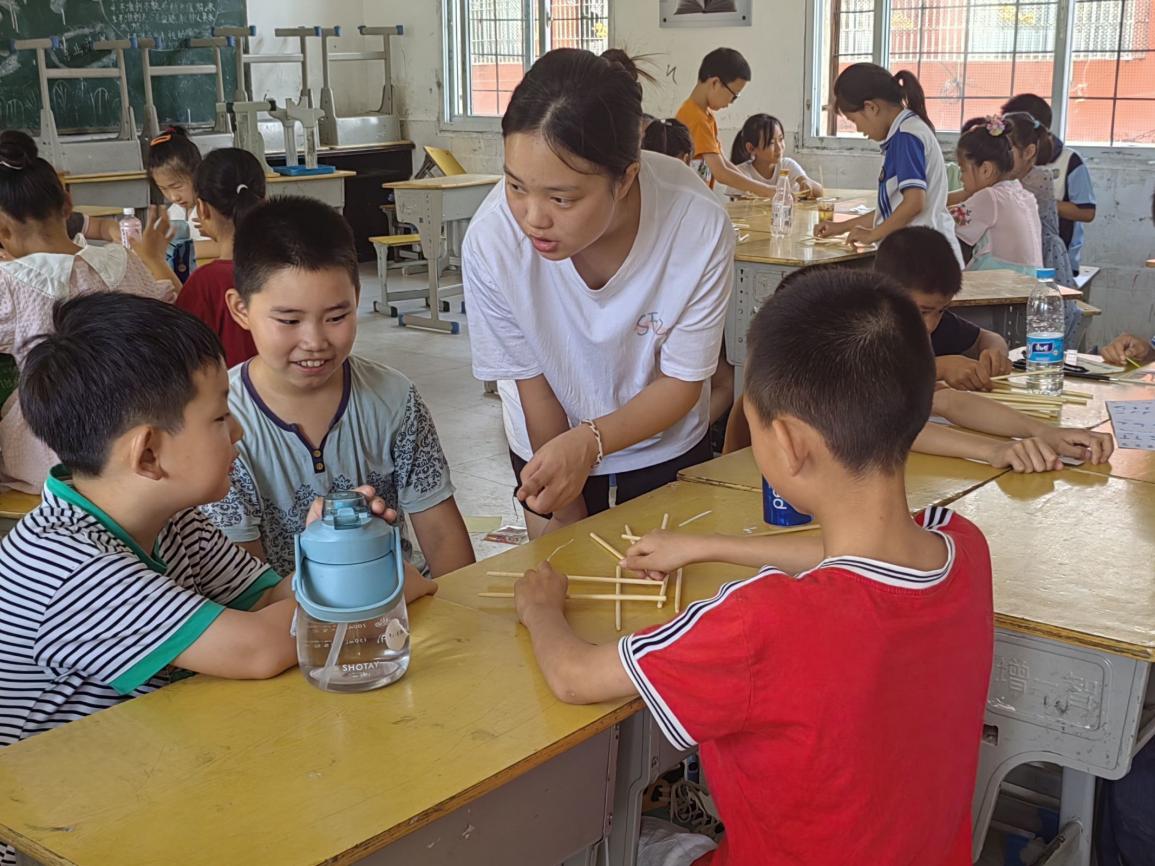 妥善规划课余时间,丰富课外全面发展. 课余时间,团队组织了户外运动如喊数抱团、羽毛球、背对背奔跑等活动,虽然正值酷暑,但学生们的活力丝毫不减,有效地增强了锻炼,劳逸结合。同时还开展了趣味实验,过程中鼓励学生不怕失败亲自动手,并由成员讲解原理,培养学生实践求真、全面发展。成员和学生们共同参与的过程中也渐渐融入彼此,建立了良好的友谊。