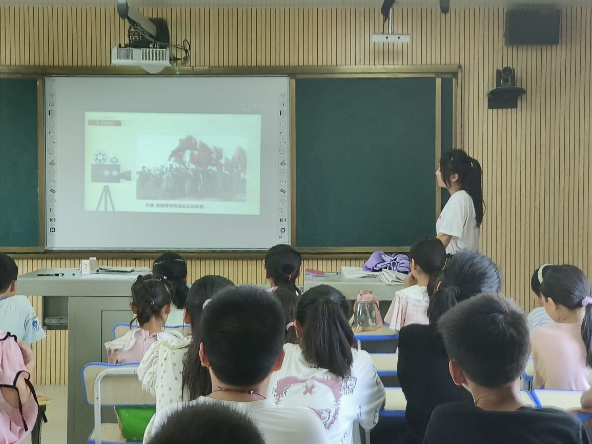 梦想党史课,党史知识趣味学。队员们回望波澜壮阔的伟大复兴之路,通过选取我党成立、红军长征、抗日战争、新中国成立、改革开放、“中国梦”的提出、建党百年等十个重大时间节点,通过事件逐步推移,逐步带领同学们回顾党的百年奋斗历程。同时打造形式多样的红色教育课堂,让孩子们在潜移默化中坚定理想信念,让红色种子在孩子们的心中生根发芽。“少年智则国智,少年富则国富,少年强则国强,少年进步则国进步。”演讲朗诵课上,队员们带领孩子们用饱满的情感真挚颂志向;电影鉴赏课上,队员们带领孩子们一起欣赏了动画《那年那兔那些事儿》。“让孩子们明白是革命先辈的牺牲,才让我们现在可以吃得好穿得好;党史知识竞赛上,队员们用比赛普及党史,鼓励孩子们踊跃回答问题,争做党史知识小达人。