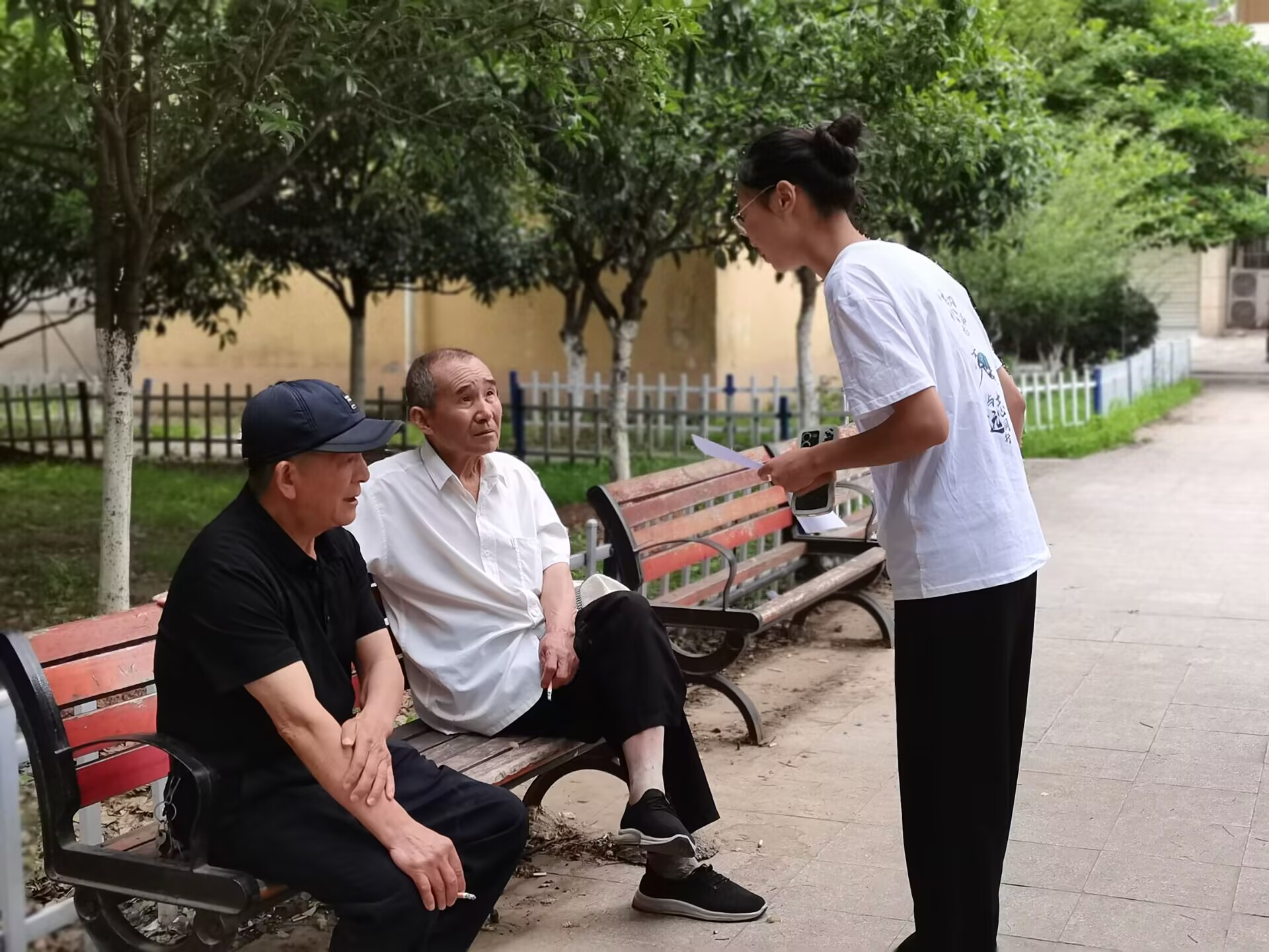 (图为队员们在向群众调研老年人生活状况与养老需求。本网讯通讯员 闵格 摄)