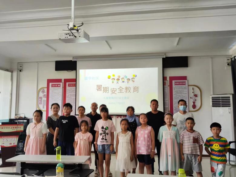 (图为安全教育开始前参加活动的孩子们和家长们的合影)