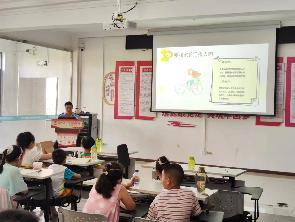 (图为志愿者在为今天的暑期安全讲座做好提前到准备,小朋友们在自己看安全宣传手册)
