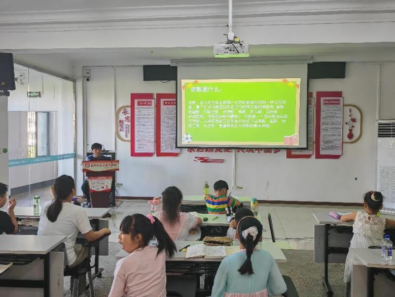 (图为儒学社区请到当地警察同志为小朋友们开始普及安全知识反对邪教的知识讲座现场)