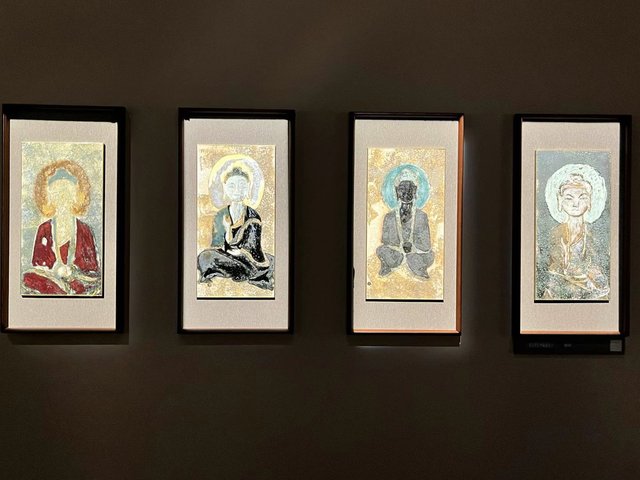 (图为以敦煌壁画为艺术主题的瓷画作品展示)