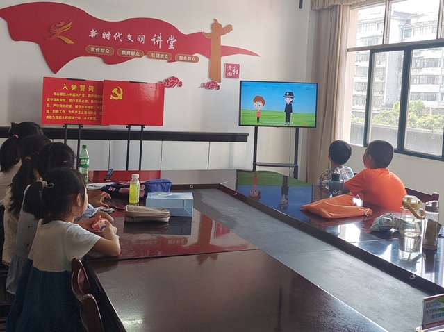 (图为小朋友们观看防溺水教育短视频)