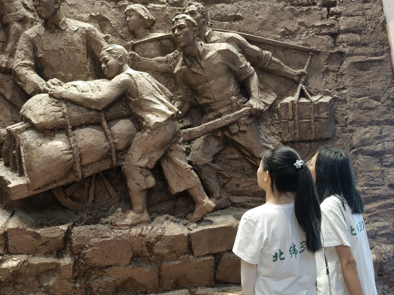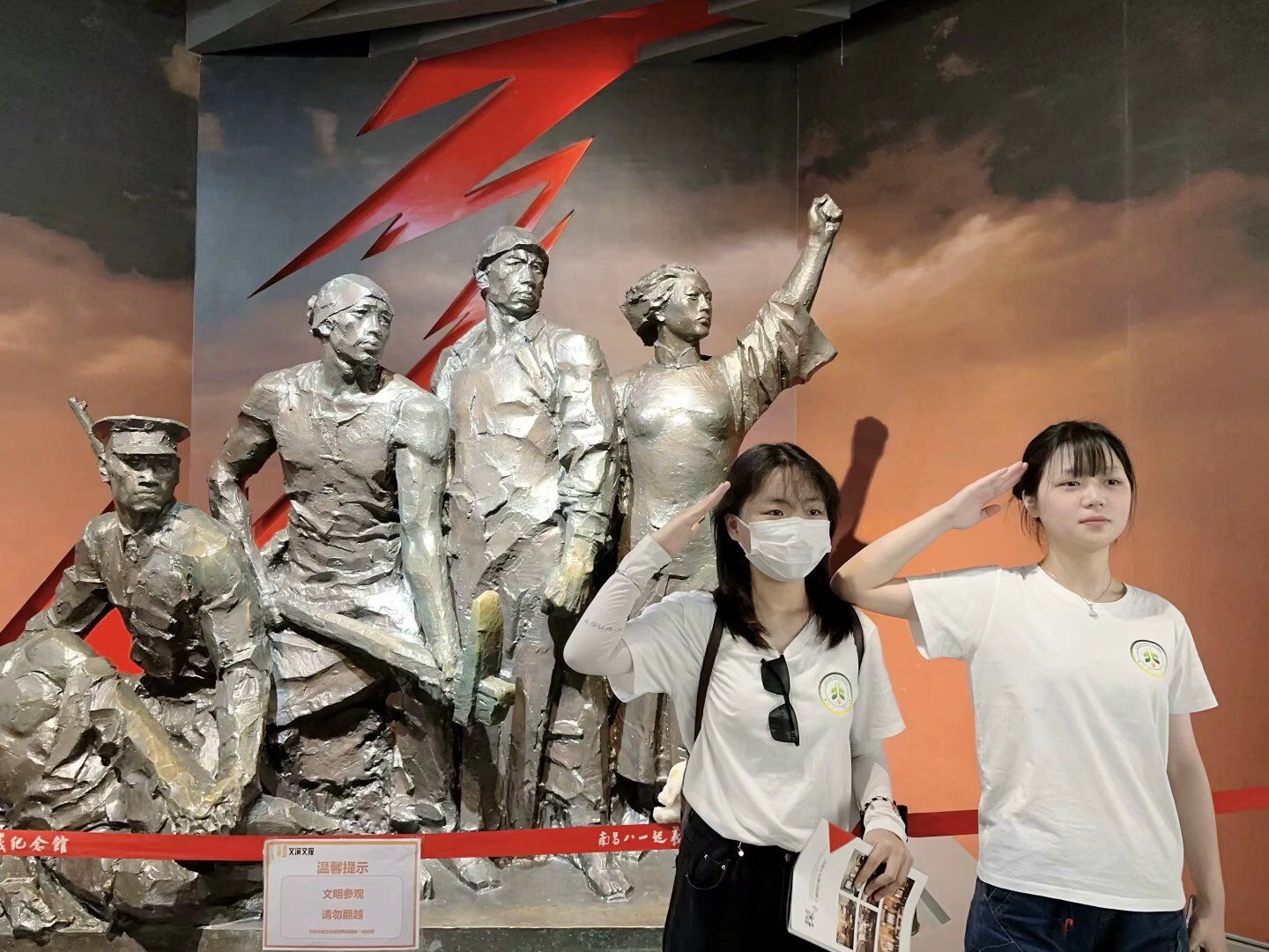 (图为队员参观八一烈士雕像)