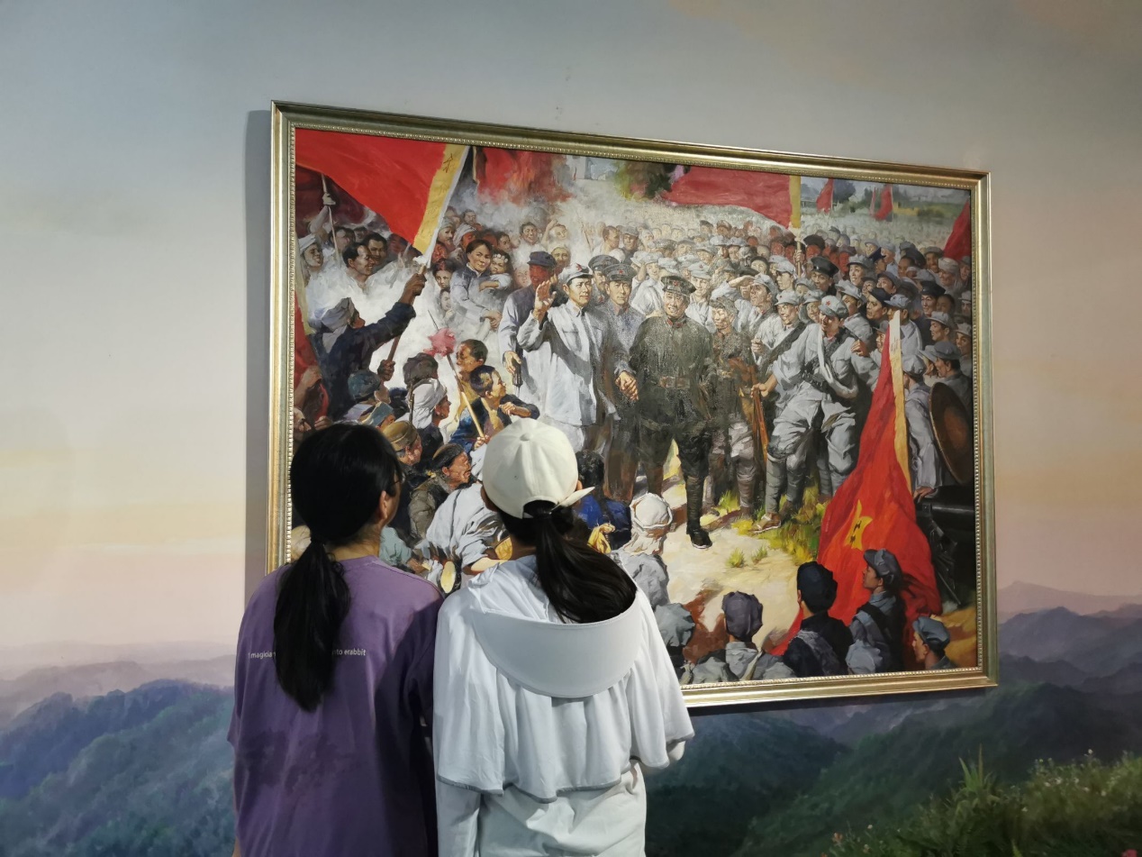 (图为队员欣赏八一起义油画)