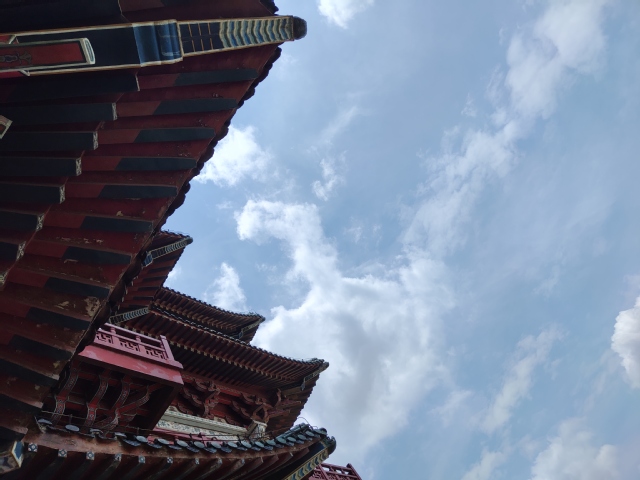 (图为实践队队员在滕王阁上拍摄的“凌空的飞檐”,与天空构成一幅和谐的画卷。通讯员王思怡 供图)