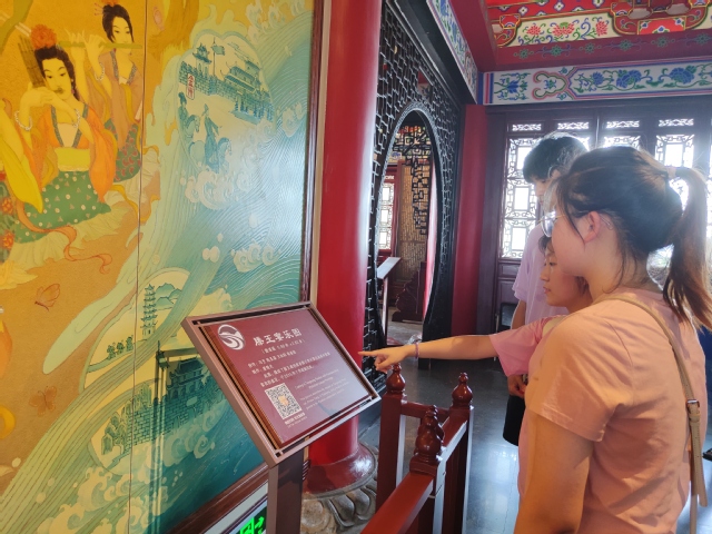 (图为实践队队员交流讨论《滕王宴乐图》导视牌上描绘的景象。通讯员王思怡 供图)