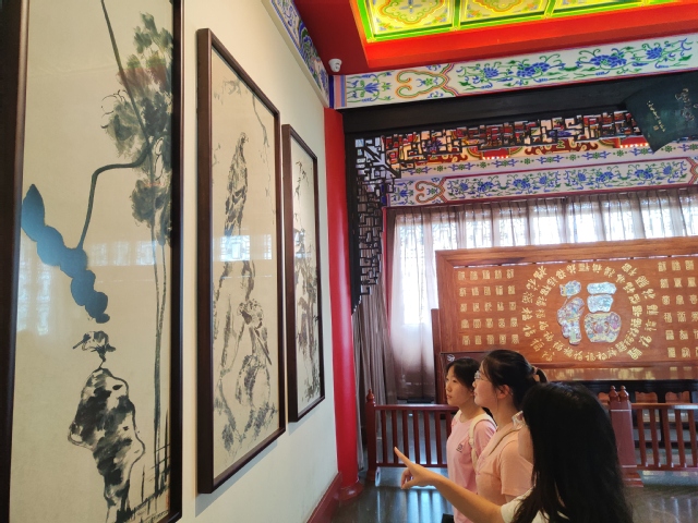 (图为实践队队员在观赏《八大山人仿画》。通讯员王思怡 供图)