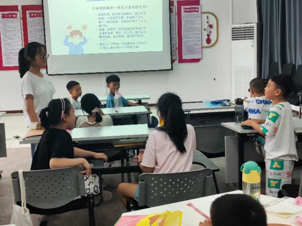 本网讯(通讯员 韩娜)在我们丰富多彩的生活中,大概所有人都有盛情难却的时候,但有些事情究其根本对我们有许多不利之处。面临这些情况时,许多人因为情面或者其他原因都选择了接受,但给自己多多少少造成了一些困惑与不悦。除此之外,当我们遇到困难和挑战时,常常会感到气馁无力,在挫折中不断后退。这都是因为我们没有说不的勇气。因此,7月15日我校北纬30度·寻粹社会实践队第十分队的志愿者给湖北省鄂州市鄂城区儒学社区的学生们上了《勇敢说不》一课。从而让学生们学会勇敢拒绝。