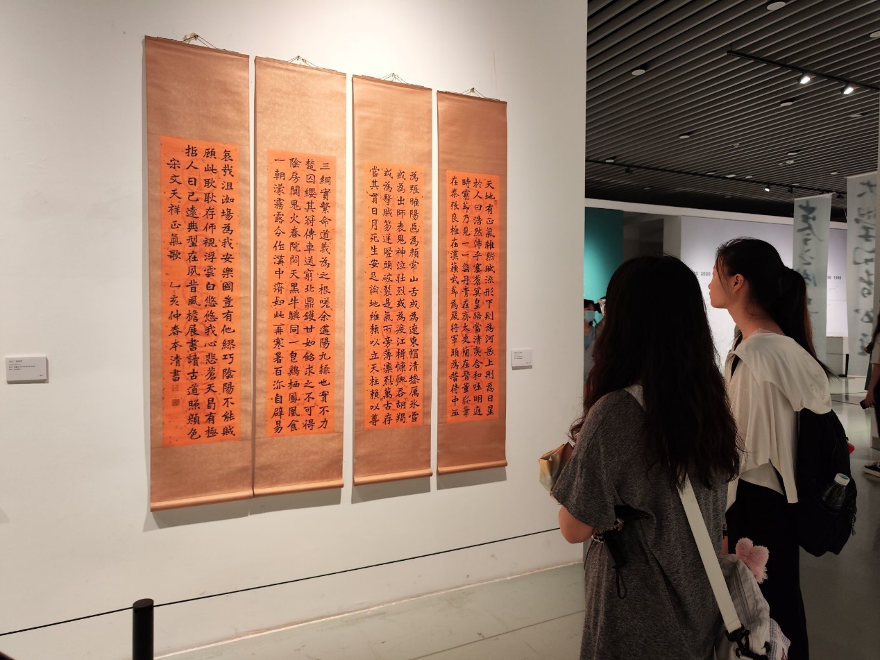 江西省美术馆内藏品丰富,以书画居多。飘逸洒脱的行书,使我仿若观赏到骏马腾空,蛟龙飞天;肆意张扬的草书,使我与执笔者同露奔放潇洒的豪情;古香古色的传统隶书,使我仿佛深居竹林茶室,正襟危坐起笔;端庄正统的楷书,象征着中华万万儿女的凛然正气……