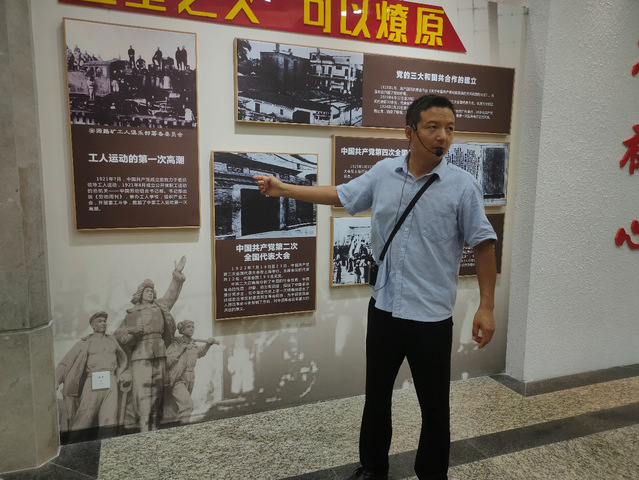 坐落于汉城正门右侧的党史纪念,全馆以红色为装潢基调,使人一踏入便肃然起敬。经过合影留恋后,团队在刘海伦老师的引导下走进党史馆。馆内整体呈U形走向,游客可从大门进入,环绕一圈又回到大门,这走过的短短的一路是中国共产党一百多年的筚路蓝缕,披荆斩棘。从国际共产党运动到最近的推进人类命运共同体,从共产党跟随着讲解员的脚步,队员们似置身于着泱泱历史洪流之中,却不能藐视任何一位先辈渺小,唯次次感叹信念伟大,精神之坚毅。值得一提的是,除开家喻户晓的革命烈士的丰功伟绩,我第一沉静下来,去聆听在这小城市里的红色英雄故事,又或是心智比幼时更加成熟,这个小城市的人参与当时共产党发展,红军革命,甚至做出不菲的贡献,初期共产党形象在我心中更加丰满起来。