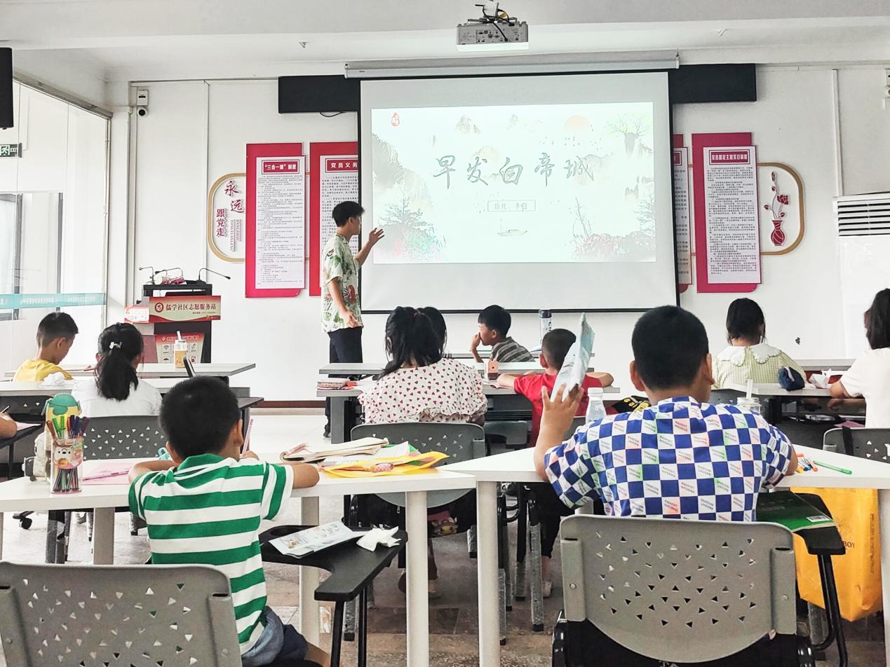 (图为志愿者带领学生赏析古诗早发白帝城。通讯员 韩娜 供图)