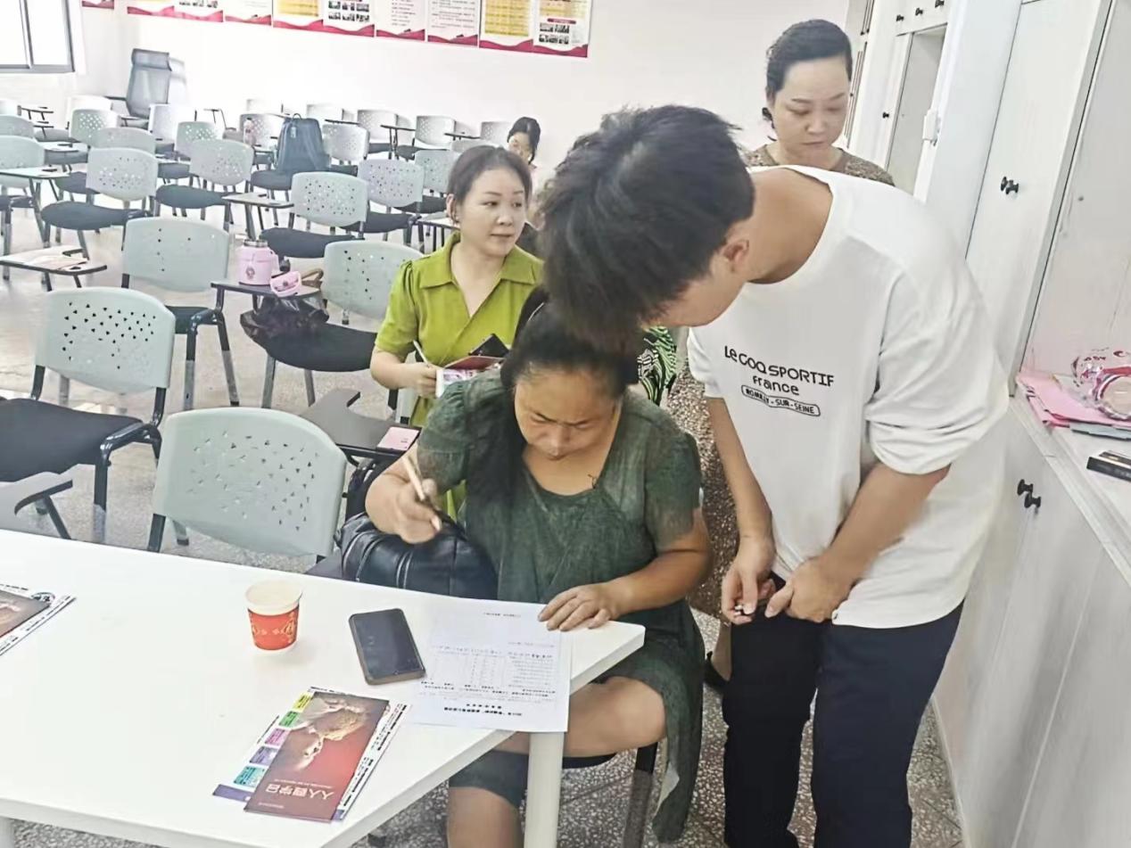 (图为志愿者同家长访谈,进一步了解学生情况。通讯员 韩娜 供图)