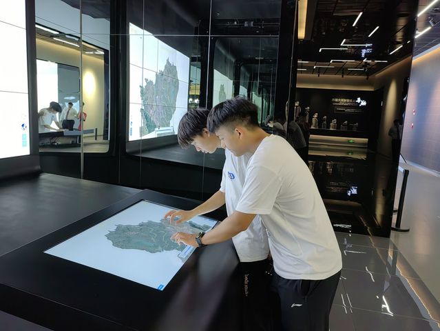 (图为实践队队员们正在操作展示中心的展示板。通讯员袁冰雪 供图)