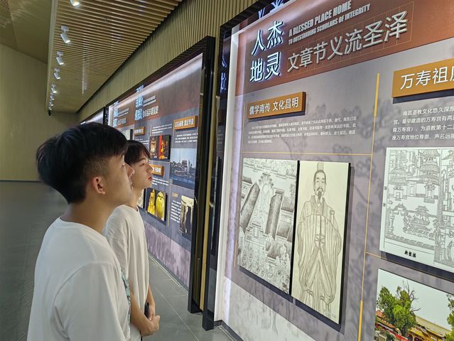 (图为实践队队员近距离阅读南昌市的文化传承。通讯员袁冰雪 供图)
