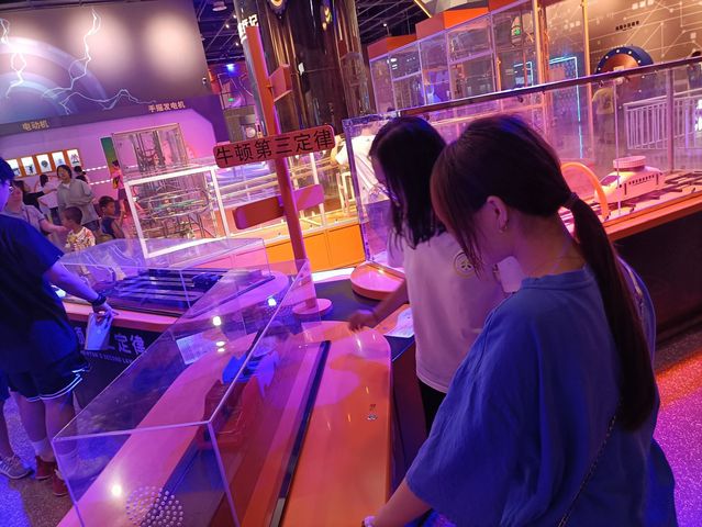 (图为实践队员近距离操作设施,感受牛顿第三定律。通讯员袁冰雪 供图)