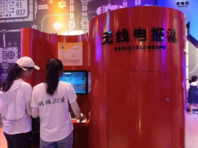 (图为实践队员正在操作无线电报机。通讯员袁冰雪 供图)