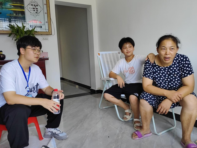 (图为志愿者到学生家中家访,分享学生在校表现)
